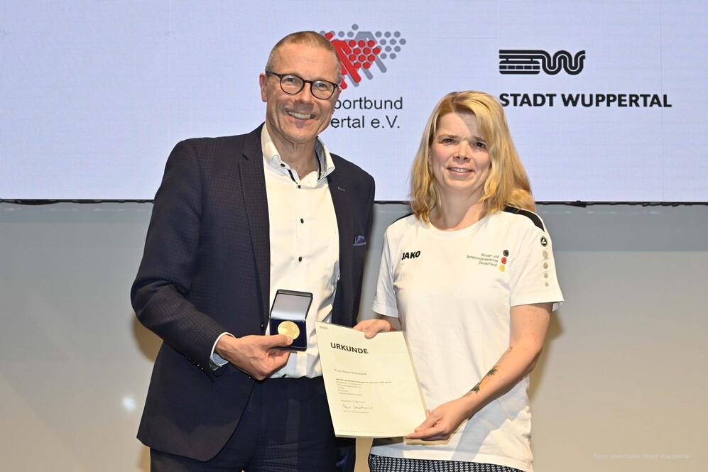 Bei der jährlichen Sportmeisterehrung der Stadt Wuppertal und des Stadtsportbundes am 12. März 2025 in der Glashalle der Sparkasse Wuppertal wurden die erfolgreichen Sportlerinnen und Spieler in der offenen Wettkampfklasse und die Senioren geehrt, die mit herausragenden Leistungen auf sich aufmerksam gemacht haben. Nach den Regularien galt es, alle die zu ehren, die Plätze eins bis drei bei Deutschen Meisterschaften und Platzierungen bei Europa- und Weltmeisterschaften erreicht hatten.