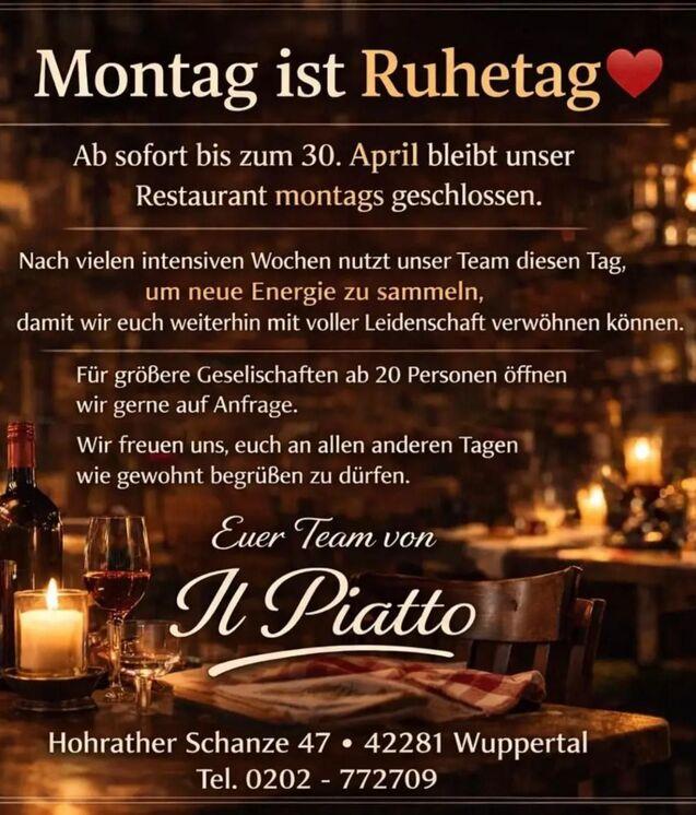 Montag ist Ruhetag im Il Piatto