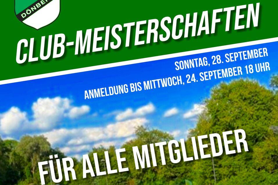 Zum Abschluss der Sommersaison 2025 laden wir Euch herzlich zu unseren internen Club-Meisterschaften am Sonntag, den 28. September auf unserer Anlage ein. Das Turnier richtet sich an alle Mitglieder – sowohl an Kinder und Jugendliche bis einschließlich 14 Jahre als auch an Aktive und Senioren ab 15 Jahren, unabhängig vom Erfahrungsstand.